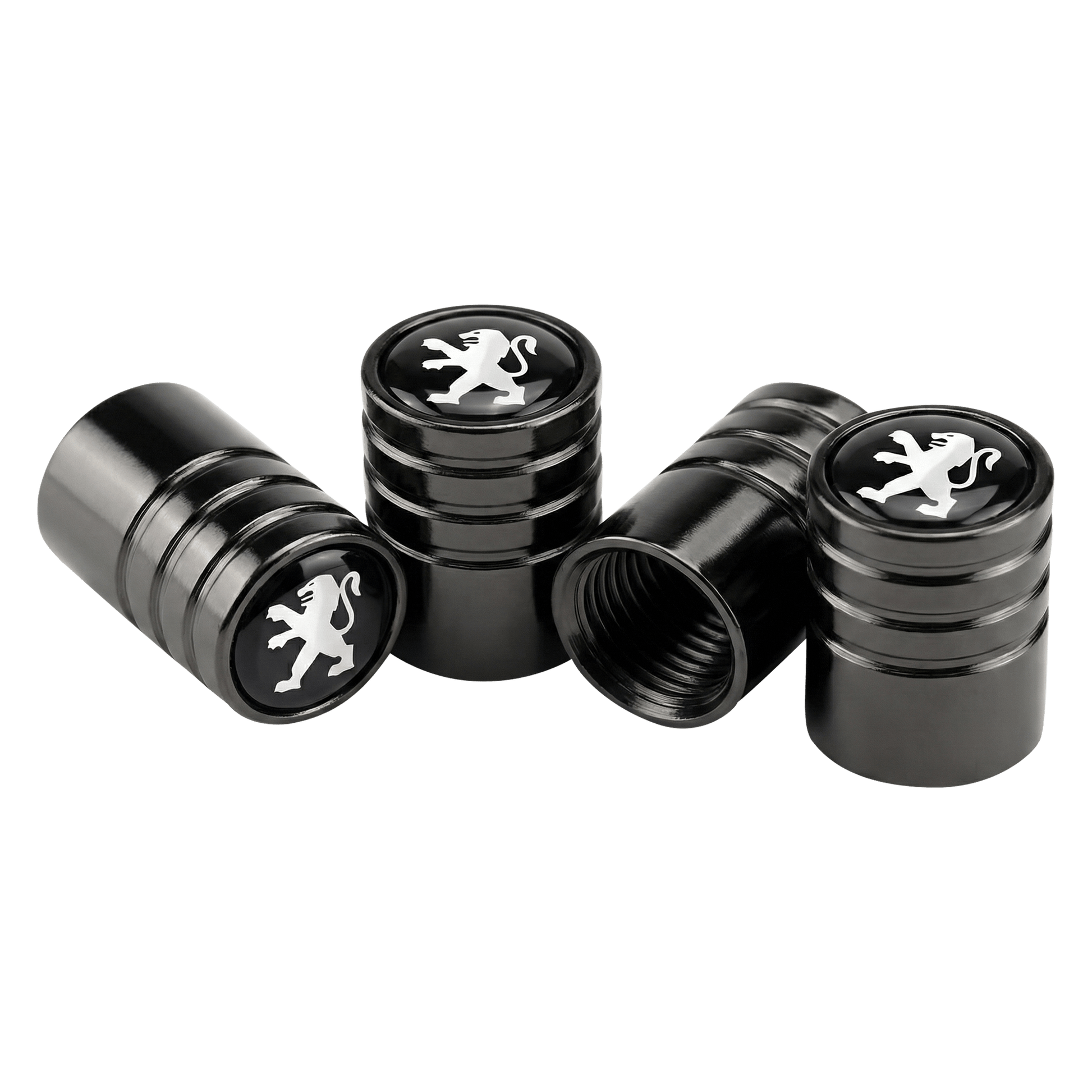 4 stk. Peugeot Logo Ventilhætter Sort Aluminium
