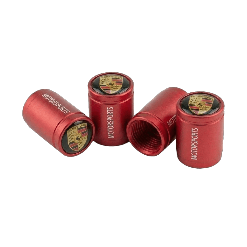 4 stk. Porsche Logo Ventilhætter i Rød Aluminium