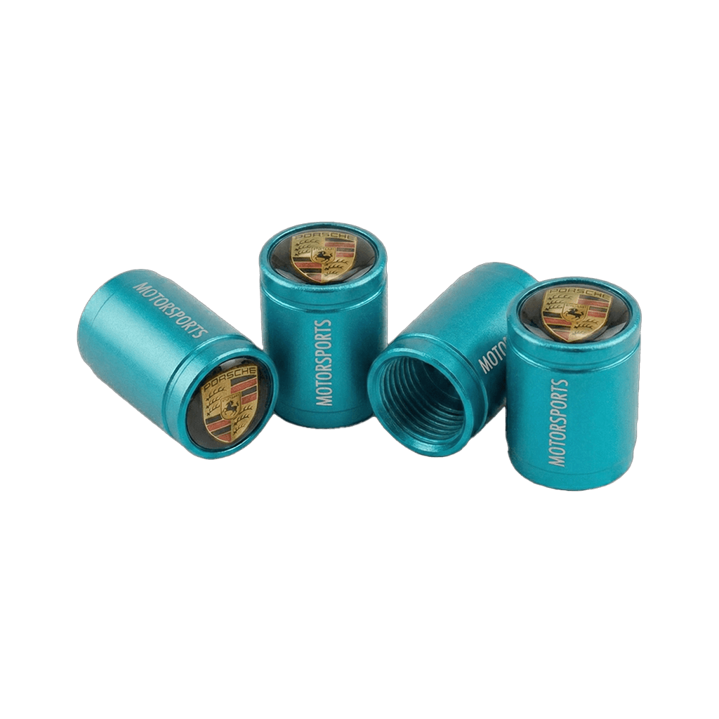 4 stk. Porsche Logo Ventilhætter i Turkis Aluminium