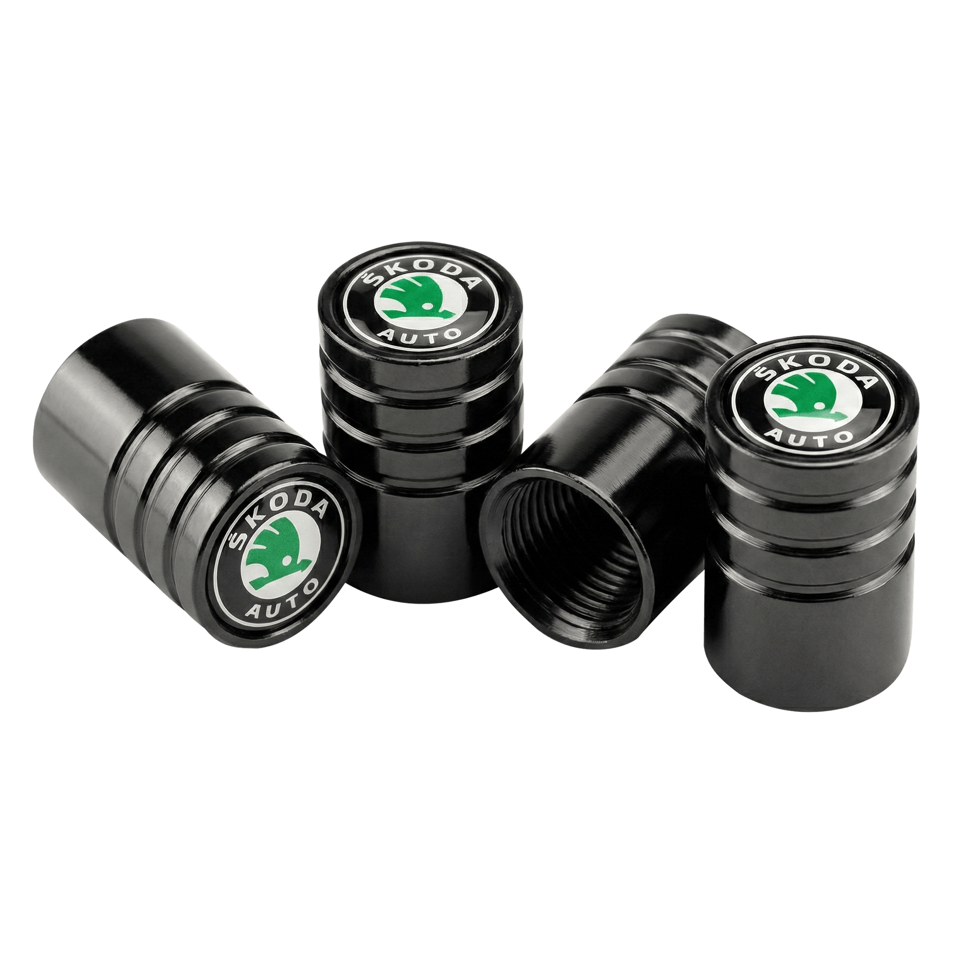 4 stk. Skoda Sort/Grøn Logo Ventilhætter Sort Aluminium
