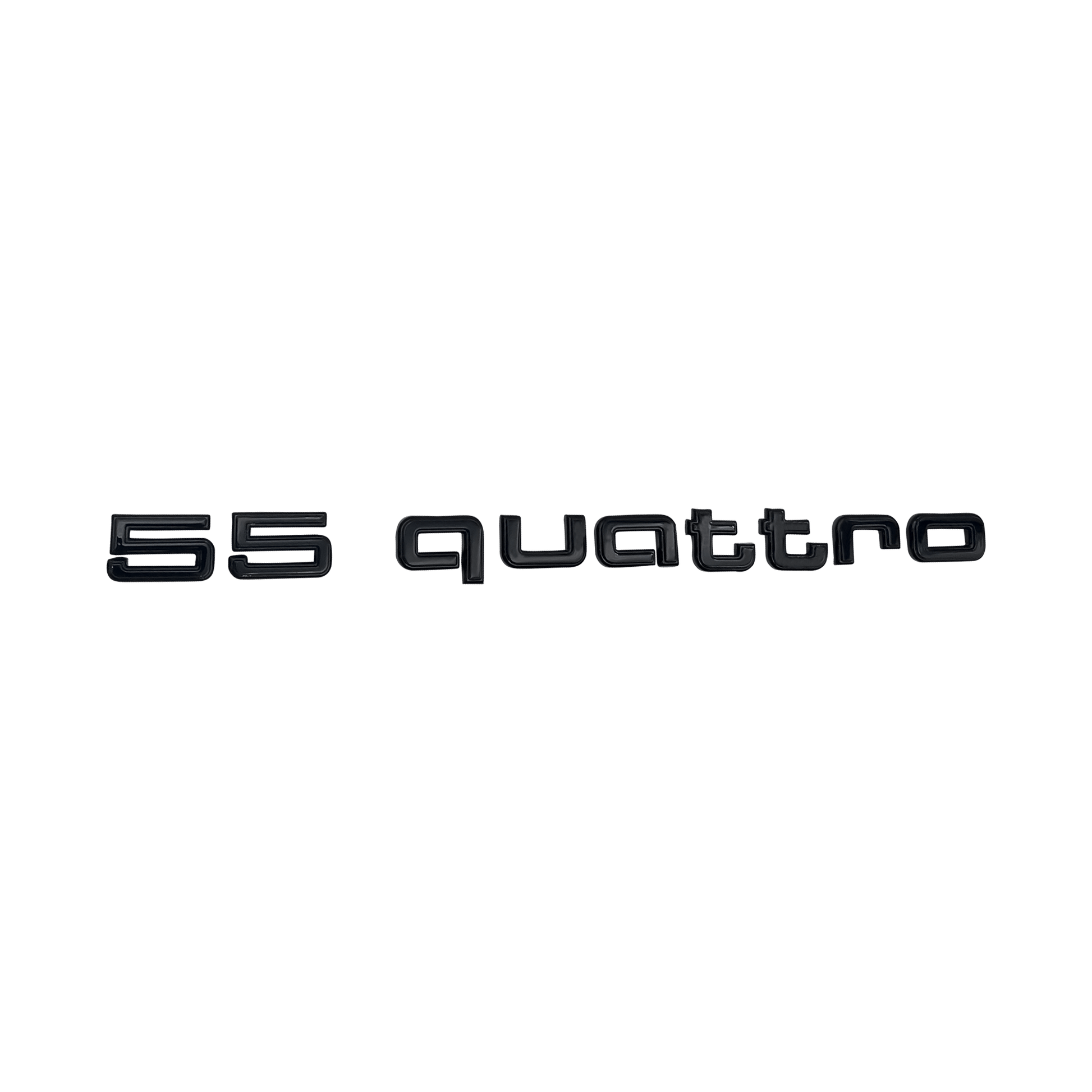 Opgrader til et eksklusivt, sporty look med “55” + “quattro” i blank sort. Perfekt til at erstatte krom og matche blacked-out styling.