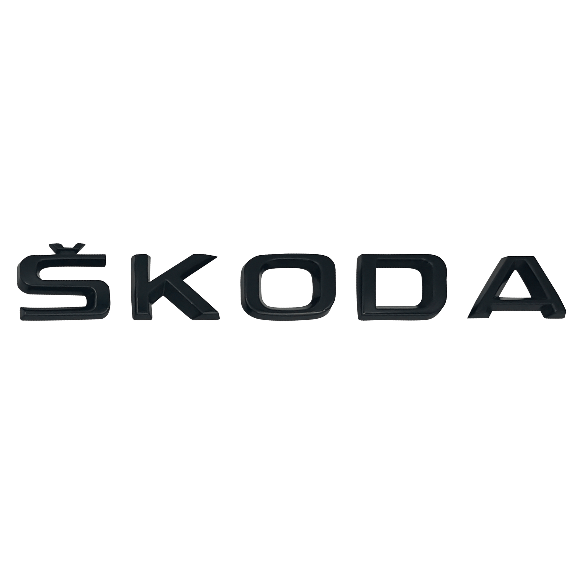 Stor udgave af “SKODA” tekstemblem i sort – ideel til brede bagklapper og modeller med tydelig, centreret SKODA-tekst fra fabrikken.